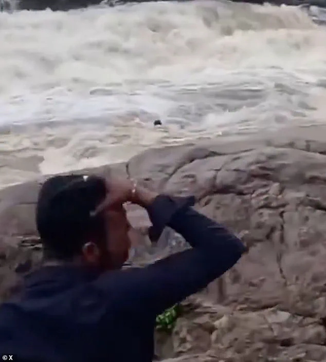 In the footage, bystanders can be seen frantically trying to intervene, tossing a rope toward Tudu and shouting instructions to help him escape the encroaching current.