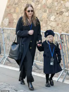 Anna Charrier and her daughter arrive at Brigitte Bardot’s funeral.