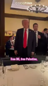 Unbeknownst to the President, a group of Code Pink protesters—known for their anti-war and pro-Palestine activism—gathered near the restaurant.