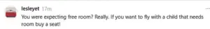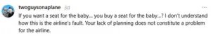 One user wrote, ‘If you want a seat for the baby… you buy a seat for the baby…?
