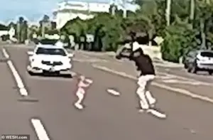 In an interview with WESH 2, Brittingham recounted the moment with a mix of relief and exhaustion. ‘I was terrified, but I didn’t think twice about pulling over,’ he said. ‘If something had happened to them, it would have ruined the rest of my life.’ The dash cam footage shows Brittingham leaping from his vehicle, waving frantically at oncoming cars to slow down.