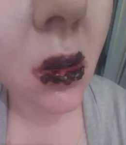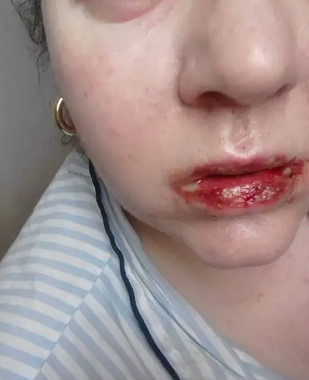 She described the experience as akin to suffering from severe burns across her face and mouth.