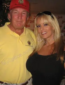 Cohen pleaded guilty to facilitating hush money payments to adult film actress Stormy Daniels, pictured above with Trump