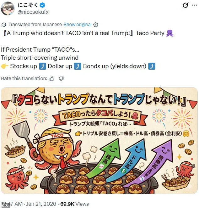 His subsequent about-face, which saw him pledge not to use force but to pursue control of the island through economic means, has been dubbed ‘TACO’ by Wall Street traders.