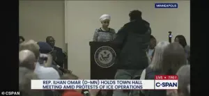 Breaking: Violent Confrontation Erupts at Ilhan Omar Town Hall as Man Storms Stage