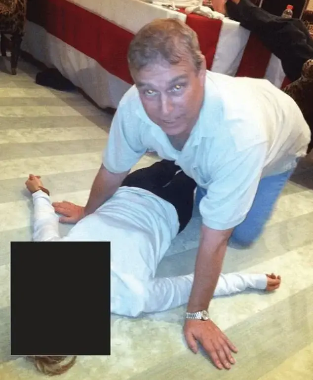 Disturbing photos released in the Epstein files appear to show Andrew Mountbatten-Windsor crouching on all fours over a female lying on the floor.